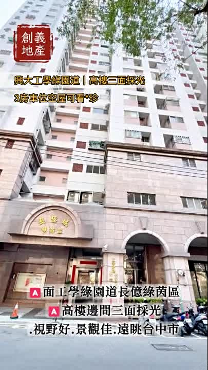 1.面工學綠園道長億綠茵區.高樓邊間三面採光.視野好.景觀佳.遠眺台中市.