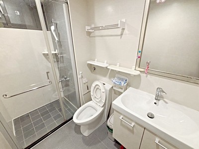 大面積落地窗,陽光滿室,空氣流通舒適。雙衛浴皆開窗,乾爽舒適。