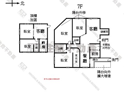 隔 間: 5房3廳3衛(含加蓋2房1廳1衛浴)