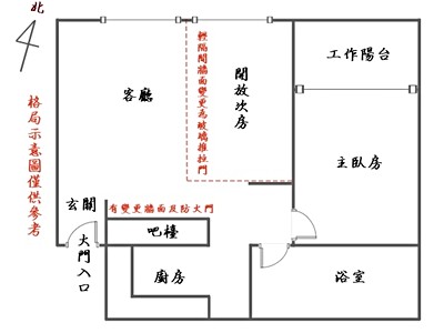 7.廚房吧檯位置有變更牆面及防火門