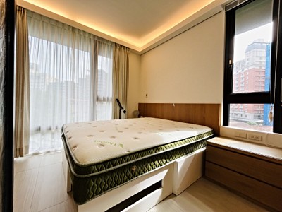 主臥連著更衣室與有對外窗的衛浴空間,私密又自在;