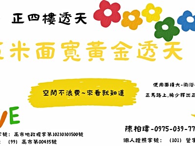 1、房屋照片僅反應使用現況,用途以使用執照或謄本記載為準。刊登內容的法定用途與現況使用不同時,恐涉違反建管法規,有遭勒令拆 除、改建、停止使用或恢復原狀之風險,請消費者於購屋或承租前多加了解相關規定,以保障自身權益。