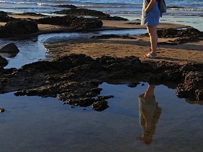 享受無汙染乾淨的空氣有益健康漫步沙灘
