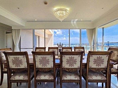 ✨ 獨特空間特色客廳挑高約 10 米,金碧輝煌的水晶吊燈垂掛其中,襯托出氣勢非凡的大器氛圍。站在窗邊,全天候可飽覽澄清湖的清澈湖光,遠眺高雄繁華市區的天際線,高樓景致一覽無遺。方位座東北朝西南,與圓山飯店隔湖相望,冬暖夏涼,是居住舒適度極佳的座向。