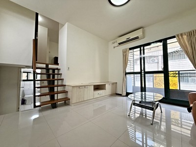 *屋主不住台中不便管理,才做出售打算,挑高做夾層設計(增建約7坪.使用約23坪)入門為客廳與廚房有個陽台.