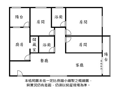 3. 本頁面若有刊登格局圖,係未依一定比例縮小繪製之概繪圖,與實況仍有差距,實際格局比例仍須以房屋現場為準。