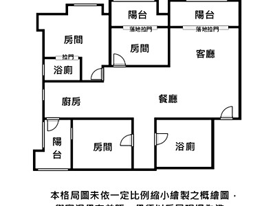 3、本頁面若有刊登格局圖,係未依一定比例縮小繪製之概繪圖,與實況仍有差距,仍須以房屋現場為準。