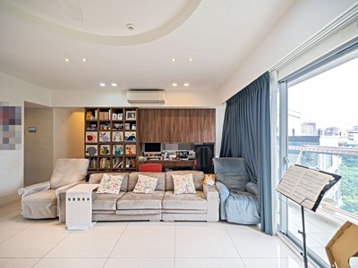 陽台面向魔豆歷險公園,景觀視野遼闊、採光明亮,日常生活充滿自然綠意與陽光。