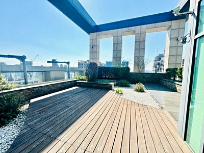 頂樓空間兼具閱覽室及LoungeBar功能,大面積的落地窗更可眺望市景,是一個足以令人放鬆的空間;兩側的空中花園,聘請日本知名景觀設計師福川成一打造禪風與現代兩個庭園,休閒或運動皆宜。