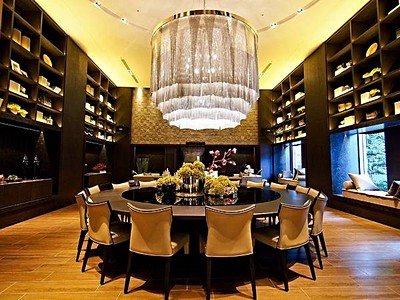 有別於常見的歐式宮廷風格,本案迎賓大廳裝潢著重現代簡約風格,挑高9米的高度,整體視覺表現相當具有氣勢及質感。