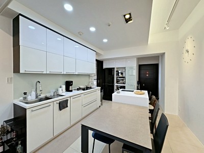 • 超大主臥+1臥室+1開放式書房,室內陽台外推,使用坪數約24坪大空間,中島式開放大廚房,玄關開窗通風良好,雙衛浴開窗,高樓視野佳,質感裝潢
