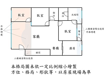 3.本頁面若有刊登格局圖,會以一定比例縮小繪製織之概繪圖,與實際屋況仍有有差距,需以房屋現況為準