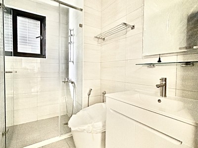(4)浴室採用Derek智慧馬桶+玻璃拉門,衛浴機能升級